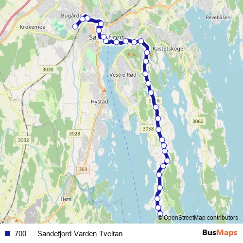 Click here to view the nearest 700 - Sandefjord-Varden-Tveitan bus stop.