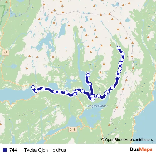 Bus 744 - Tveita-Gjon-Holdhus Schedule in Tysse