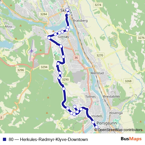 Bus 80 - Herkules-Rødmyr-Klyve-Downtown Schedule in Skien