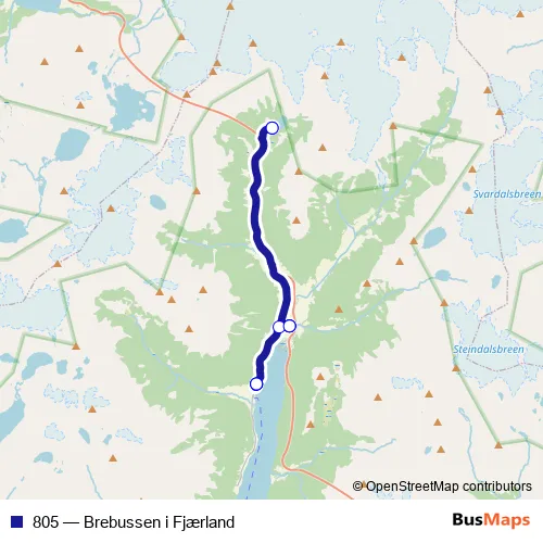 Bus 805 - Brebussen i Fjærland in Fjaerland: Stops & Timetable