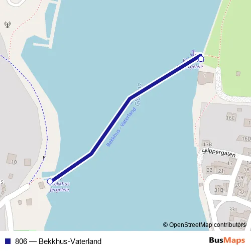 The first stop of the 806 ferry route is Vaterland fergeleie and the last stop is Bekkhus fergeleie. 806 (Bekkhus-Vaterland) is operational during everyday.