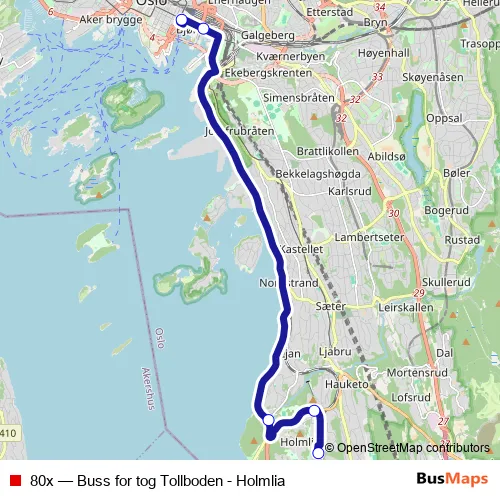Click here to view the nearest 80x - Buss for tog Tollboden - Holmlia bus stop.