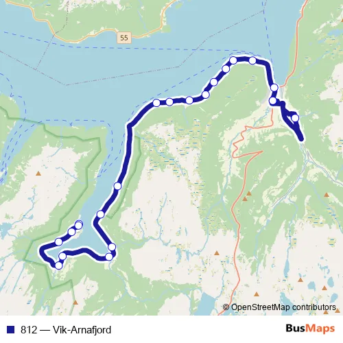 Services on the 812 - Vik-Arnafjord bus start at 05:55 on Monday, Tuesday, Wednesday, Thursday, Friday, Sunday.