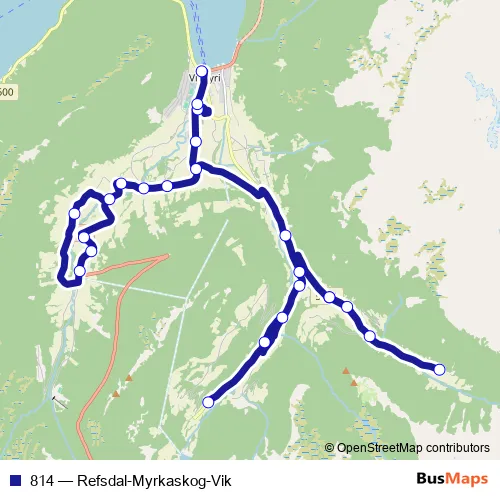 Click here to view the nearest 814 - Refsdal-Myrkaskog-Vik bus stop.