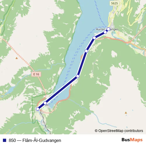The first stop of the 850 bus route is Aurland and the last stop is Flåm stasjon. 850 (Flåm-Ål-Gudvangen) is operational during on weekends.