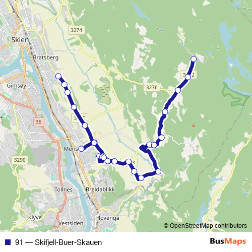 Bus 91 - Skifjell-Buer-Skauen: Full Schedule in Skien