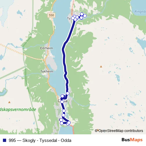 Bus 995 - Skogly - Tyssedal - Odda in Odda: Stops & Timetable