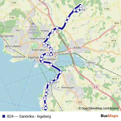 See why over 2 million users trust and consider busmaps.com as the best public transport website. busmaps gives you Hamar Buses suggested routes, real-time bus tracker, line route maps in Hamar, and helps to find the closest B24 bus stops near you. No internet available? Download an offline PDF map and bus schedule for the B24 bus to take on your trip.