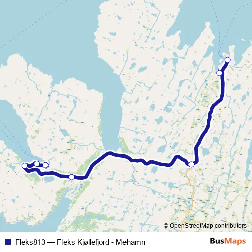 The first stop of the Fleks813 bus route is Mehamn and the last stop is Kjøllefjord sentrum. Fleks813 (Fleks Kjøllefjord - Mehamn) is operational during everyday.