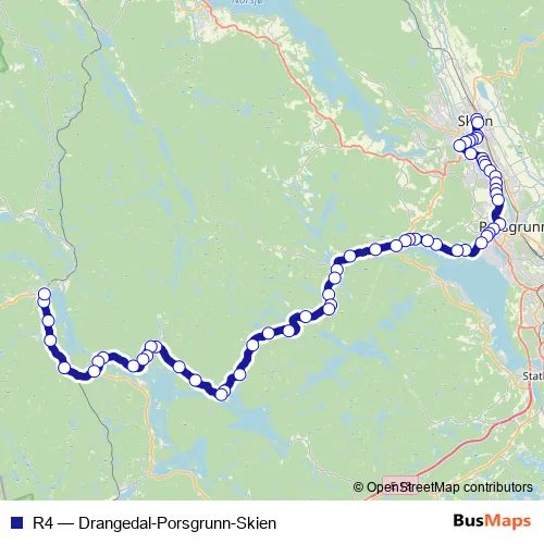Bus R4 - Drangedal-Porsgrunn-Skien: Full Schedule in Skien