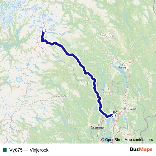 The first stop of the Vy875 bus route is Oslo bussterminal and the last stop is Eidsbugarden. Vy875 (Vinjerock) is operational during everyday.