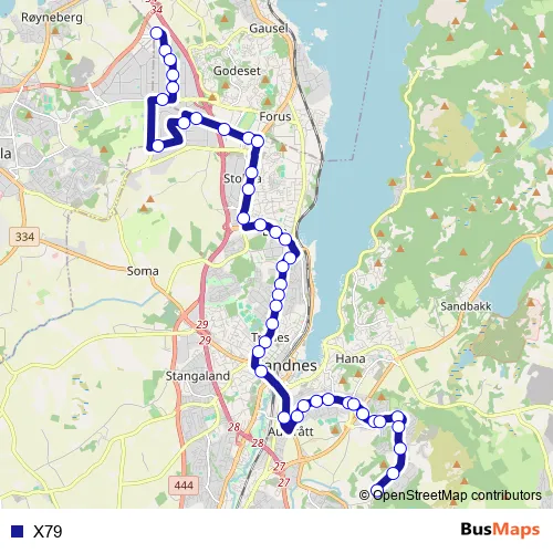 See why over 2 million users trust and consider busmaps.com as the best public transport website. busmaps gives you Sandnes Buses suggested routes, real-time bus tracker, line route maps in Sandnes, and helps to find the closest X79 bus stops near you. No internet available? Download an offline PDF map and bus schedule for the X79 bus to take on your trip.