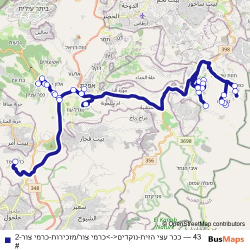 Bus 43 - ככר עצי הזית-נוקדים<->כרמי צור/מזכירות-כרמי צור-2# in Bethlehem: Stops & Timetable