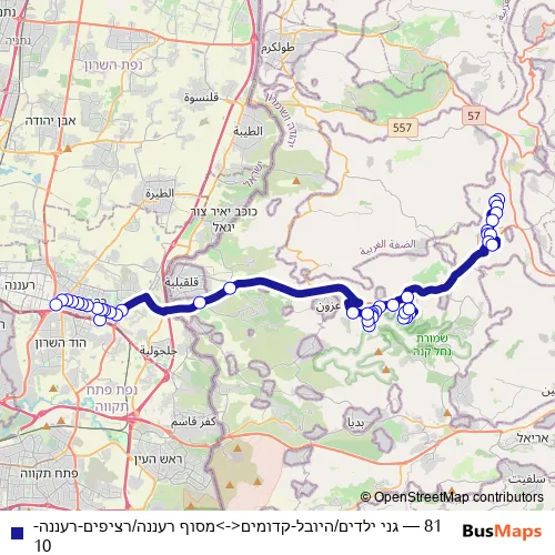 Bus 81 - גני ילדים/היובל-קדומים<->מסוף רעננה/רציפים-רעננה-10: Full Schedule in Karney Shomron