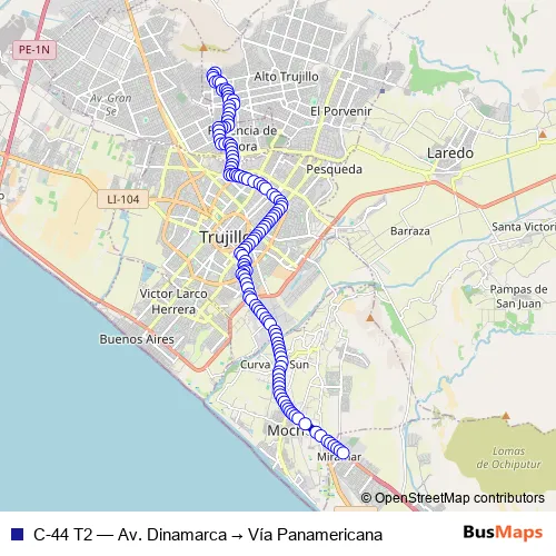 Bus C-44 T2 - Av. Dinamarca → Vía Panamericana: Full Schedule in Trujillo