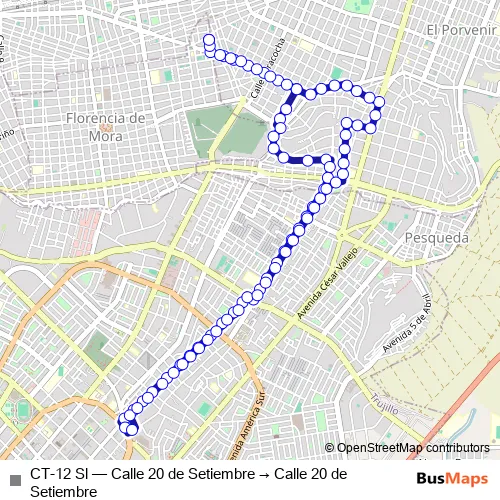 Bus CT-12 Sl - Calle 20 de Setiembre → Calle 20 de Setiembre: Full Schedule in El Porvenir