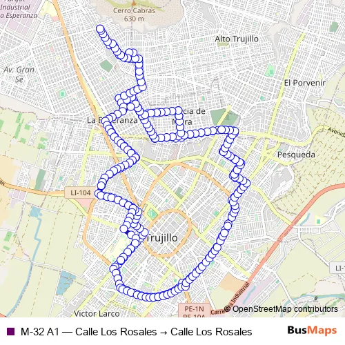 M-32 A1 (Calle Los Rosales → Calle Los Rosales) Bus in Trujillo