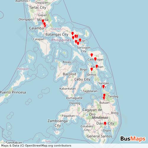Philtranco Service Enterprises, Inc. operates in the following cities: Balatan, Butuan, Camaligan, Catbalogan, Davao, Donsol, Manila, Pio Duran, Santa Rosa.