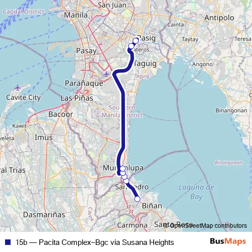 Click here to view the nearest 15b - Pacita Complex–Bgc via Susana Heights bus stop.