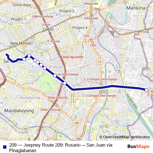 Click here to view the nearest 209 - Jeepney Route 209: Rosario → San Juan via Pinaglabanan bus stop.