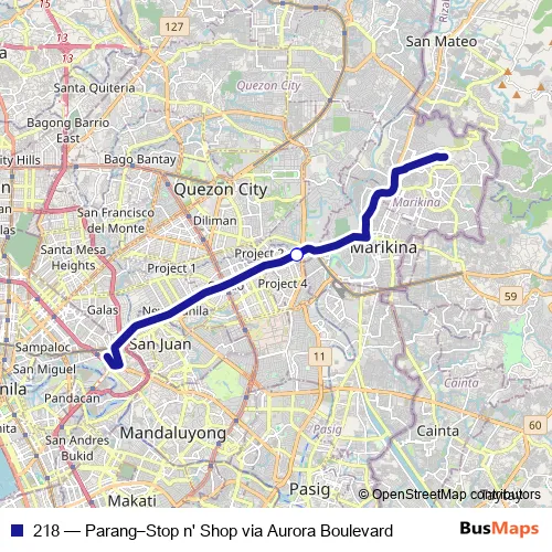 Bus 218 - Parang–Stop n' Shop via Aurora Boulevard in Quezon City: Stops & Timetable