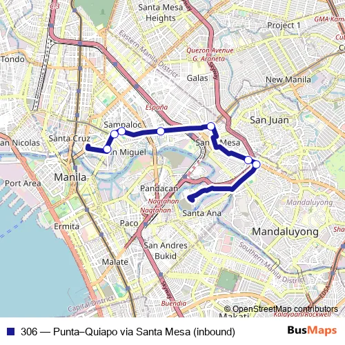 Bus 306 - Punta–Quiapo via Santa Mesa (inbound) Schedule in Manila