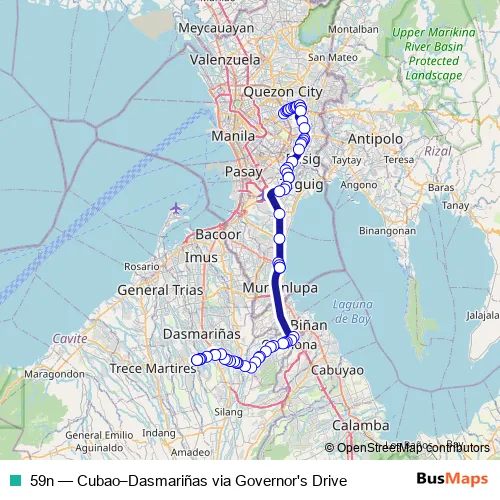 Services on the 59n - Cubao–Dasmariñas via Governor's Drive bus stop at 03:20 +1 on Monday, Tuesday, Wednesday, Thursday, Friday, Saturday, Sunday.