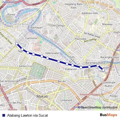 See why over 2 million users trust and consider busmaps.com as the best public transport website. busmaps gives you Makati City Buses suggested routes, real-time bus tracker, line route maps in Makati City, and helps to find the closest Alabang Lawton via Sucat bus stops near you. No internet available? Download an offline PDF map and bus schedule for the Alabang Lawton via Sucat bus to take on your trip.