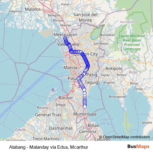 Alabang - Malanday via Edsa, Mcarthur bus Route Map