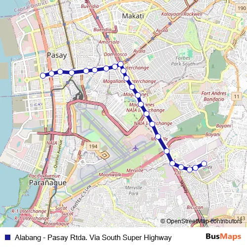 Alabang - Pasay Rtda. Via South Super Highway bus Route Map