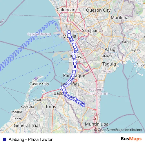 See why over 2 million users trust and consider busmaps.com as the best public transport website. busmaps gives you Manila Buses suggested routes, real-time bus tracker, line route maps in Manila, and helps to find the closest Alabang - Plaza Lawton bus stops near you. No internet available? Download an offline PDF map and bus schedule for the Alabang - Plaza Lawton bus to take on your trip.