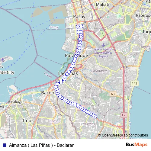 Additional information: Almanza ( Las Piñas ) - Baclaran has 57 stops and the total trip duration for this route is approximately 77 minutes.