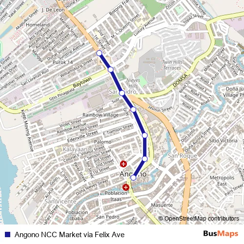 Angono NCC Market via Felix Ave bus Route Map