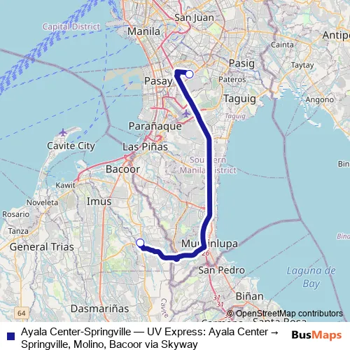 Bus Ayala Center-Springville - UV Express: Ayala Center → Springville, Molino, Bacoor via Skyway in Makati City: Stops & Timetable