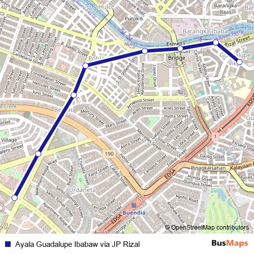 Additional information: Ayala Guadalupe Ibabaw via JP Rizal has 8 stops and the total trip duration for this route is approximately 14 minutes.
