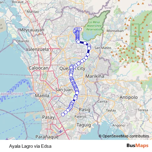 See why over 2 million users trust and consider busmaps.com as the best public transport website. busmaps gives you Quezon City Buses suggested routes, real-time bus tracker, line route maps in Quezon City, and helps to find the closest Ayala Lagro via Edsa bus stops near you. No internet available? Download an offline PDF map and bus schedule for the Ayala Lagro via Edsa bus to take on your trip.