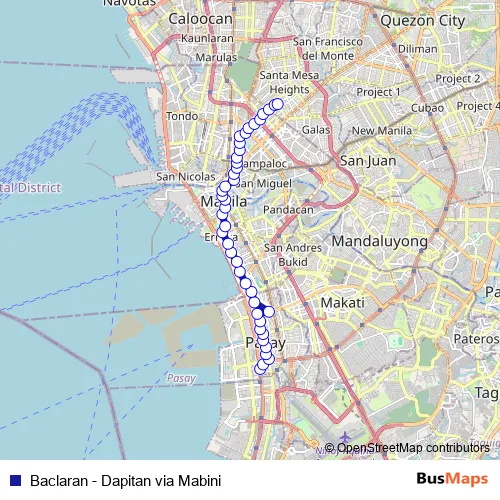 See why over 2 million users trust and consider busmaps.com as the best public transport website. busmaps gives you Manila Buses suggested routes, real-time bus tracker, line route maps in Manila, and helps to find the closest Baclaran - Dapitan via Mabini bus stops near you. No internet available? Download an offline PDF map and bus schedule for the Baclaran - Dapitan via Mabini bus to take on your trip.