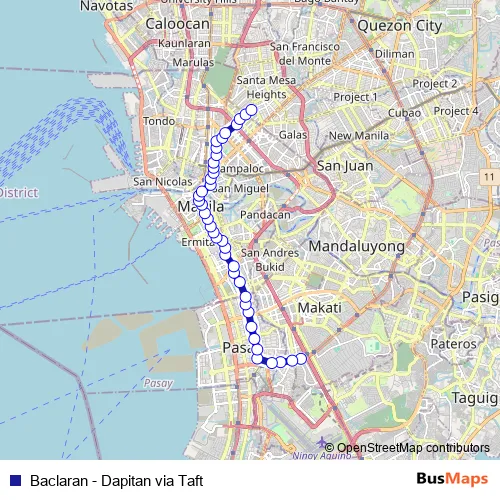 See why over 2 million users trust and consider busmaps.com as the best public transport website. busmaps gives you Manila Buses suggested routes, real-time bus tracker, line route maps in Manila, and helps to find the closest Baclaran - Dapitan via Taft bus stops near you. No internet available? Download an offline PDF map and bus schedule for the Baclaran - Dapitan via Taft bus to take on your trip.