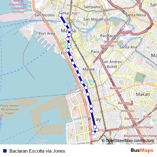 See why over 2 million users trust and consider busmaps.com as the best public transport website. busmaps gives you Manila Buses suggested routes, real-time bus tracker, line route maps in Manila, and helps to find the closest Baclaran Escolta via Jones bus stops near you. No internet available? Download an offline PDF map and bus schedule for the Baclaran Escolta via Jones bus to take on your trip.