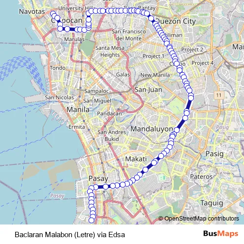 Additional information: Baclaran Malabon (Letre) via Edsa has 98 stops and the total trip duration for this route is approximately 149 minutes.