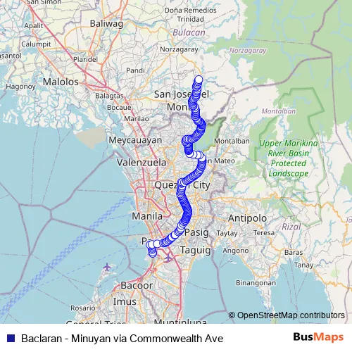 See why over 2 million users trust and consider busmaps.com as the best public transport website. busmaps gives you Manila Buses suggested routes, real-time bus tracker, line route maps in Manila, and helps to find the closest Baclaran - Minuyan via Commonwealth Ave bus stops near you. No internet available? Download an offline PDF map and bus schedule for the Baclaran - Minuyan via Commonwealth Ave bus to take on your trip.