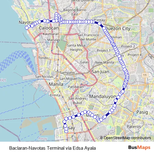 See why over 2 million users trust and consider busmaps.com as the best public transport website. busmaps gives you Caloocan Buses suggested routes, real-time bus tracker, line route maps in Caloocan, and helps to find the closest Baclaran-Navotas Terminal via Edsa Ayala bus stops near you. No internet available? Download an offline PDF map and bus schedule for the Baclaran-Navotas Terminal via Edsa Ayala bus to take on your trip.