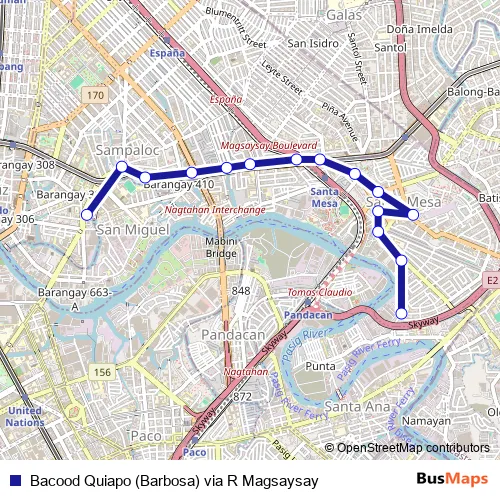 See why over 2 million users trust and consider busmaps.com as the best public transport website. busmaps gives you Manila Buses suggested routes, real-time bus tracker, line route maps in Manila, and helps to find the closest Bacood Quiapo (Barbosa) via R Magsaysay bus stops near you. No internet available? Download an offline PDF map and bus schedule for the Bacood Quiapo (Barbosa) via R Magsaysay bus to take on your trip.