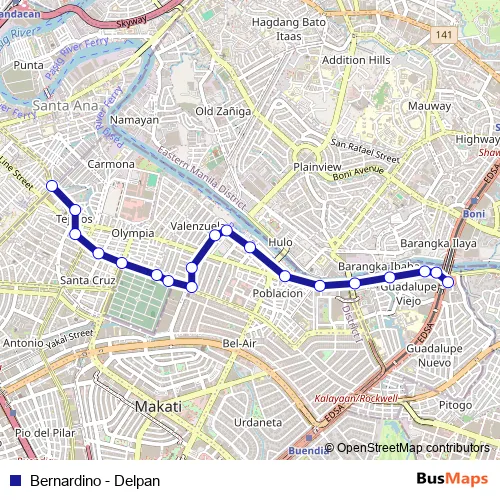 See why over 2 million users trust and consider busmaps.com as the best public transport website. busmaps gives you Makati City Buses suggested routes, real-time bus tracker, line route maps in Makati City, and helps to find the closest Bernardino - Delpan bus stops near you. No internet available? Download an offline PDF map and bus schedule for the Bernardino - Delpan bus to take on your trip.