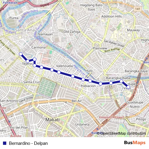 See why over 2 million users trust and consider busmaps.com as the best public transport website. busmaps gives you Makati City Buses suggested routes, real-time bus tracker, line route maps in Makati City, and helps to find the closest Bernardino - Delpan bus stops near you. No internet available? Download an offline PDF map and bus schedule for the Bernardino - Delpan bus to take on your trip.