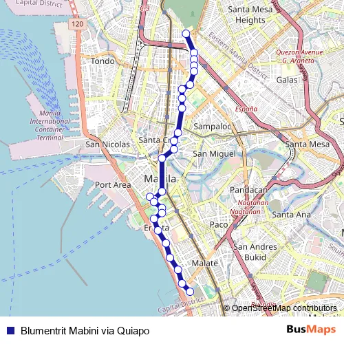 Additional information: Blumentrit Mabini via Quiapo has 26 stops and the total trip duration for this route is approximately 39 minutes.