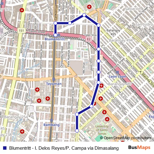 Blumentritt - I. Delos Reyes/P. Campa via Dimasalang bus Route Map