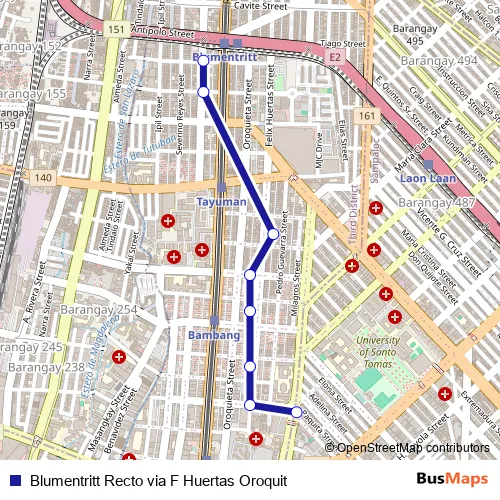 Blumentritt Recto via F Huertas Oroquit bus Route Map