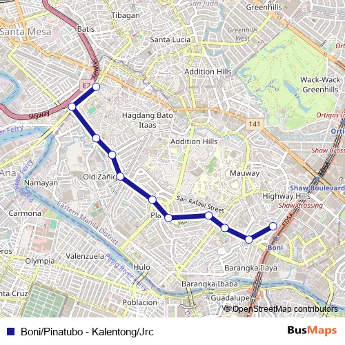 See why over 2 million users trust and consider busmaps.com as the best public transport website. busmaps gives you Pasig City Buses suggested routes, real-time bus tracker, line route maps in Pasig City, and helps to find the closest Boni/Pinatubo - Kalentong/Jrc bus stops near you. No internet available? Download an offline PDF map and bus schedule for the Boni/Pinatubo - Kalentong/Jrc bus to take on your trip.