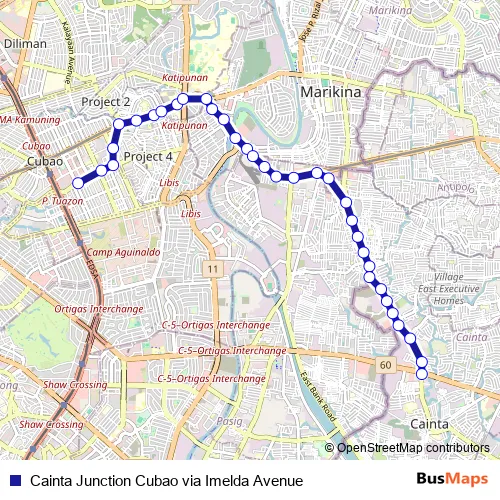 Additional information: Cainta Junction Cubao via Imelda Avenue has 34 stops and the total trip duration